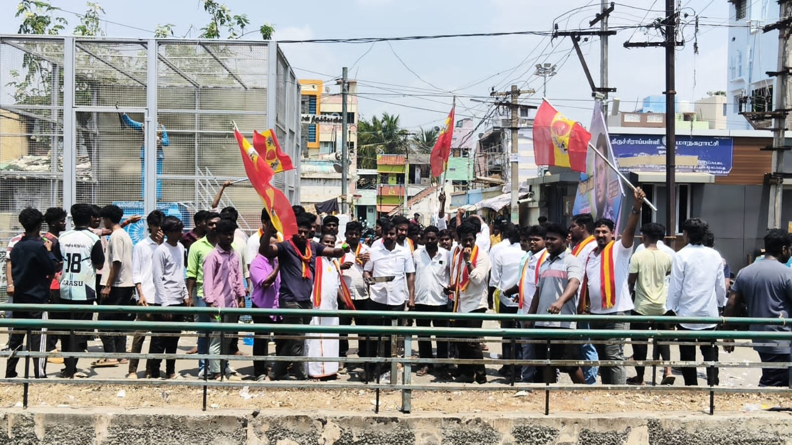 தமிழக வெற்றிக் கழகத்தின் திருச்சி மாவட்டப் பொறுப்பாளர் குடமுருட்டி கரிகாலனின் ஆலோசனையின்படி, மலைக்கோட்டை பகுதி இணைச் செயலாளர் ராக்போர்ட் ராஜேஷ் தலைமையில் சிறப்பான ஏற்பாடுகள் செய்யப்பட்டிருந்தன. வட்டச் செயலாளர் வெங்கடேசன் முன்னிலையில் நடைபெற்ற இந்த நிகழ்வில், தொண்டர்கள் திரளாகக் கூடி பட்டாசுகள் வெடித்தும், பொதுமக்களுக்கு இனிப்புகள் வழங்கியும் தங்களது மகிழ்ச்சியைப் பகிர்ந்து கொண்டனர்.