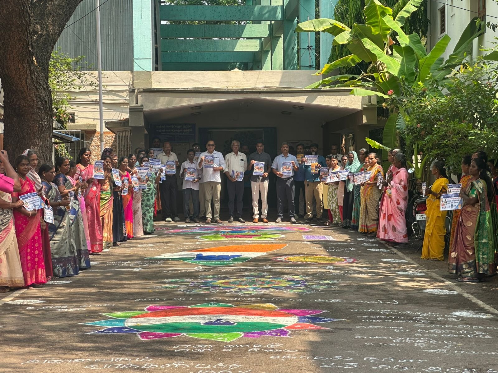 திருச்சி மாநகராட்சி கோ-அபிஷேகபுரம் மண்டல அலுவலகத்தில் வருகின்ற சட்டமன்ற தேர்தலில் 100% வாக்களிப்பது தொடர்பாக ரங்கோலி கோலம் வரைந்து பொதுமக்களுக்கு விழிப்புணர்வு நிகழ்ச்சி நடைபெற்றது.