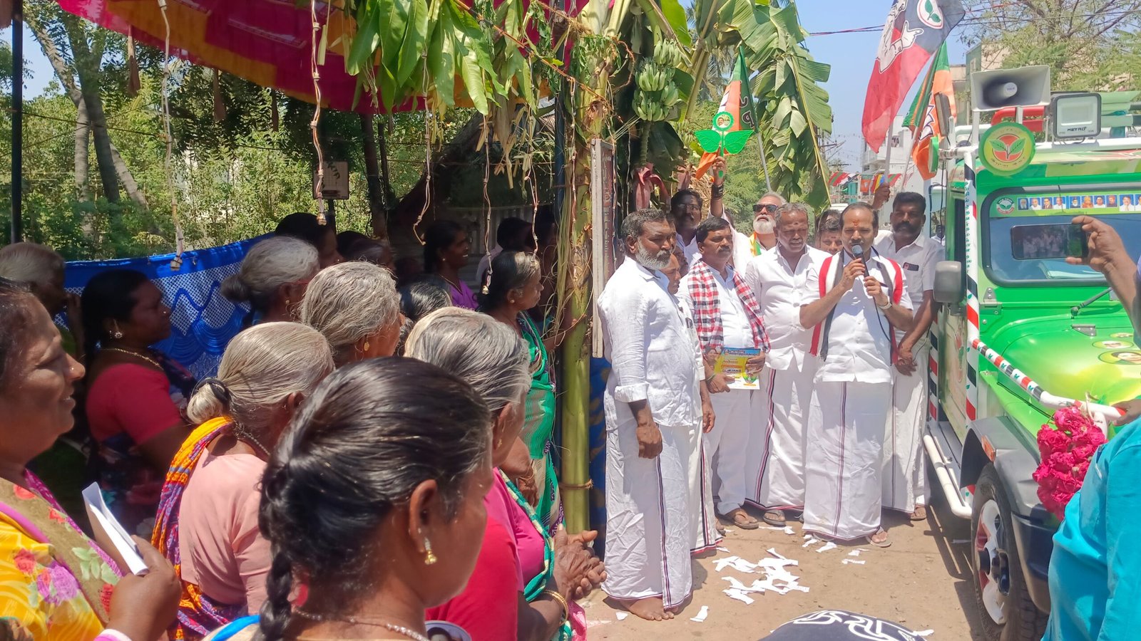 திறந்த ஜீப்பில் சென்று வாக்கு சேகரித்து பொதுமக்கள் மத்தியில் ப.குமார் பேசியதாவது;-