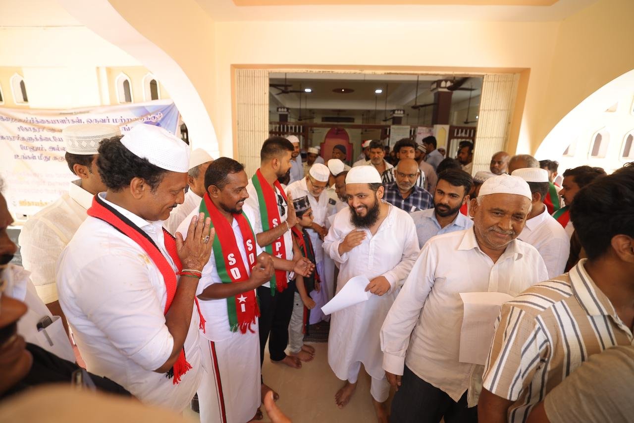 திருவெறும்பூர் சட்டமன்றத் தொகுதிக்கு உட்பட்ட பல்வேறு பள்ளிவாசல்களில், மதச்சார்பற்ற கூட்டணிக் வேட்பாளரும் அமைச்சருமான முனைவர் அன்பில் மகேஸ் பொய்யாமொழி இன்று தீவிர வாக்கு சேகரிப்பில் ஈடுபட்டார்