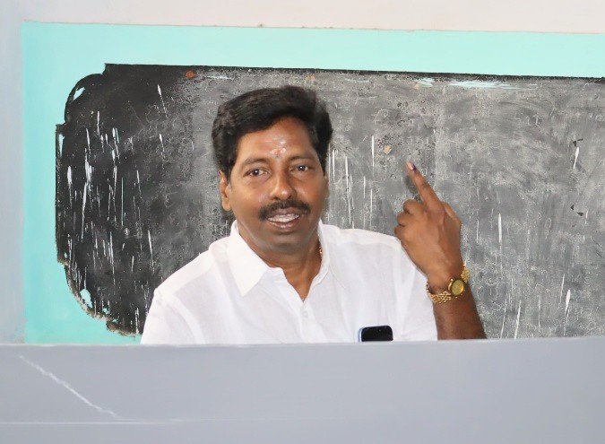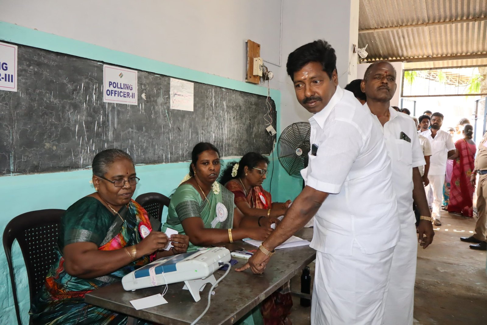திருச்சி கிழக்கு தொகுதிக்குட்பட்ட எடத்தெருவில் அமைந்துள்ள யாது குல சங்க நடுநிலைப்பள்ளி வாக்குச்சாவடியில் இன்று காலை வாக்களித்து தனது ஜனநாயக கடமை நிறைவேற்றினார்.