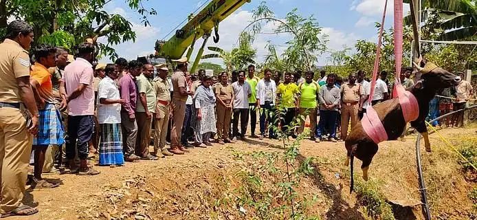 உயிருடன் இருந்த காட்டெருமைகளை மீட்பது சவாலாக இருந்ததால், மதுரையிலிருந்து டாக்டர் கலைவாணன் தலைமையிலான ஆறு பேர் கொண்ட மருத்துவக் குழுவினர் வரவழைக்கப்பட்டனர். காட்டெருமைகளுக்கு மயக்க ஊசி செலுத்தப்பட்டு, ராட்சத கிரேன் மற்றும் பொதுமக்களின் உதவியுடன் கயிறுகள் மூலம் அவை பத்திரமாக மேலே கொண்டு வரப்பட்டன. மீட்கப்பட்ட இரண்டு காட்டெருமைகளும் பின்னர் வனப்பகுதிக்குள் விடுவிக்கப்பட்டன.