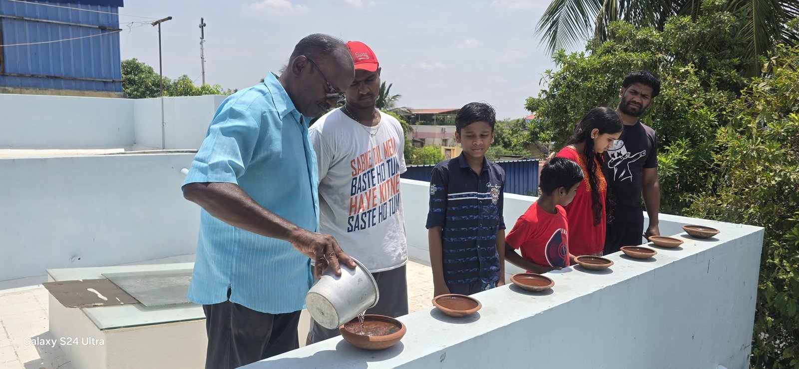 கோடை காலத்தை முன்னிட்டு பறவைகளுக்கு மண்பானையில் தண்ணீர் வைத்தால்,அது நீண்ட நேரம் குளிர்ச்சியாக இருக்கும். பறவைகள் முழ்கி குளித்து உடல் சூட்டை தணித்துக் கொள்ளவும். நம்மால் முடிந்த அளவு பறவையினங்கள் கோடையின் வெயில் கெடுமையால் அழியாமல் காத்திட சிறிய முயற்சிகள் தான் பறவைகளுக்கு தண்ணீர் வைப்பது.சூழலின் உயிர்ப்புக்கு பறவைகள் மிகவும் அவசியம் என்றார்.