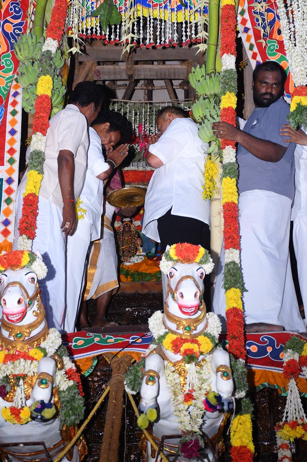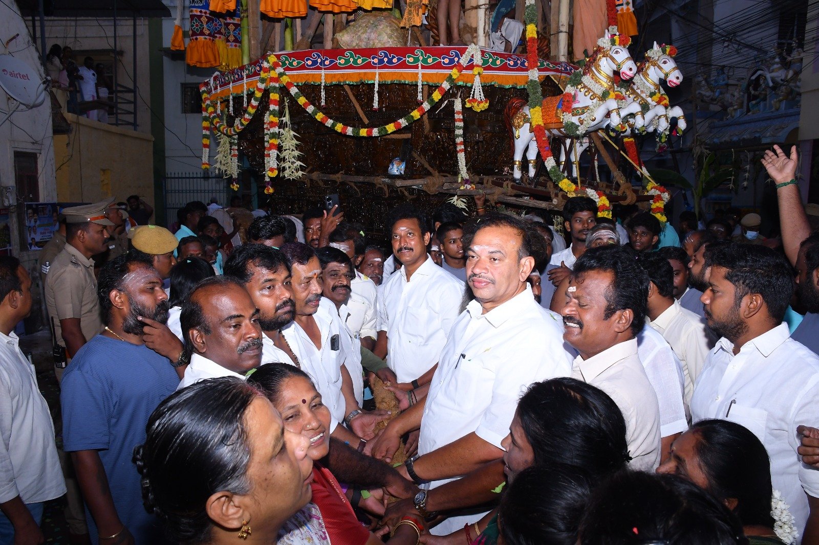 மற்றும் திரளான பக்தர்கள் வடம்பிடித்து இழுக்க விழா கோலாகலமாக நடைபெற்றது.