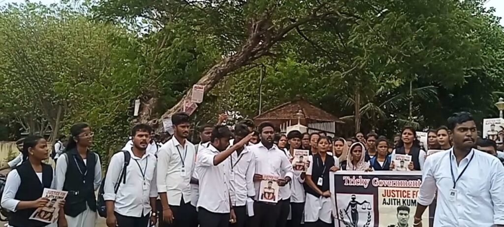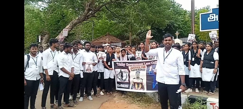 அஜித் குமாரின் மரணத்திற்கு நீதி கேட்டு அரசு சட்டக் கல்லூரி மாணவ மாணவிகள் ஆர்ப்பாட்டம்