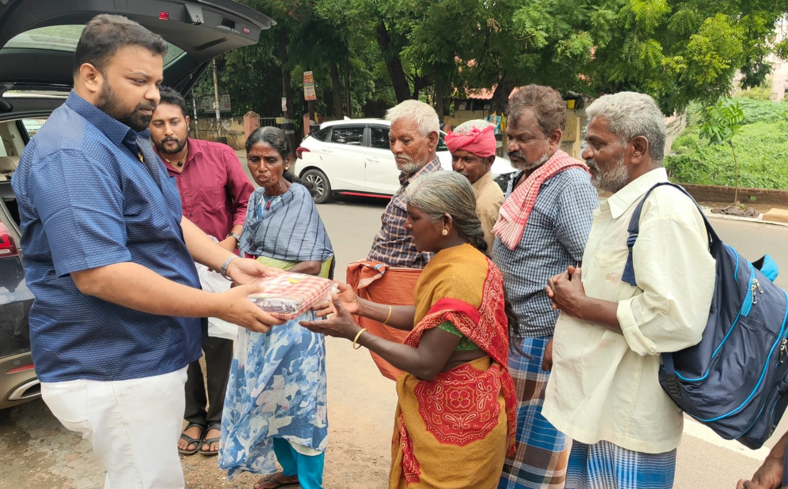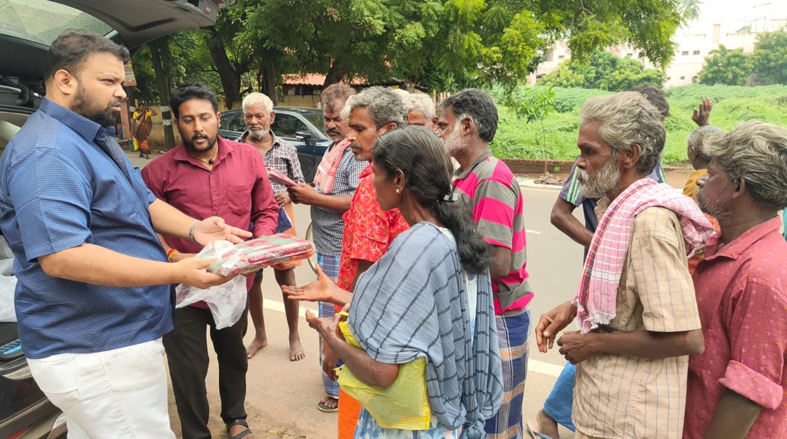 சாலையோர ஆதரவற்றோருக்கு தீபாவளி பரிசுகள் அளித்த கிறிஸ்தவ நல்லெண்ண இயக்க மேற்கு மாவட்ட செயலாளர்.